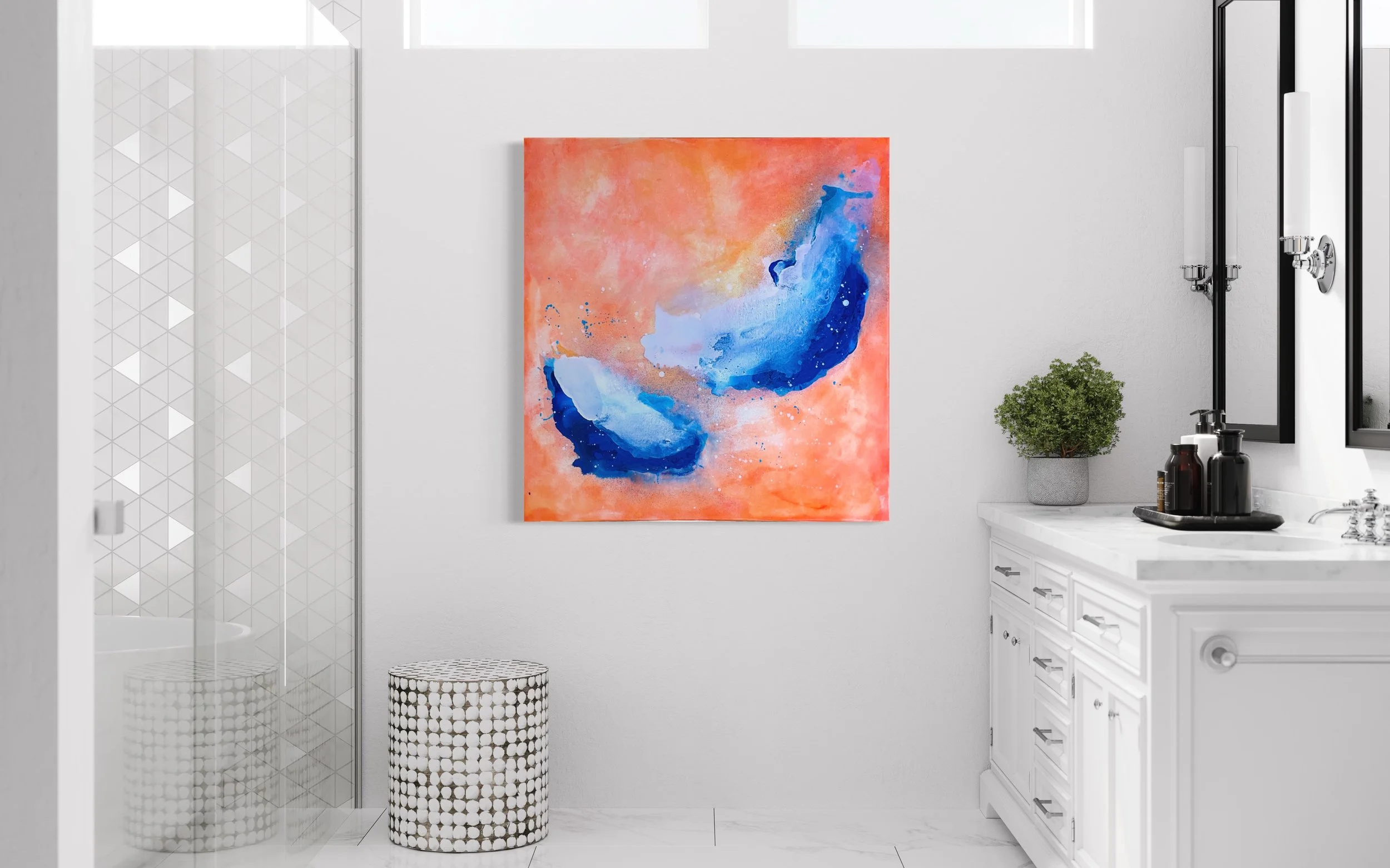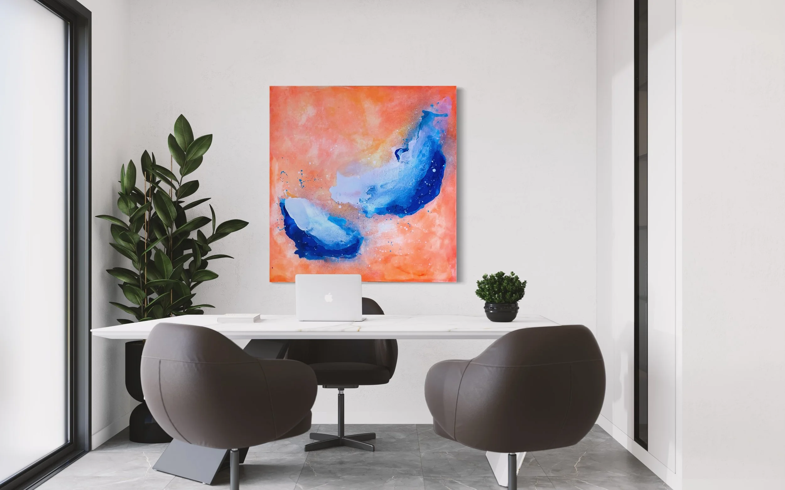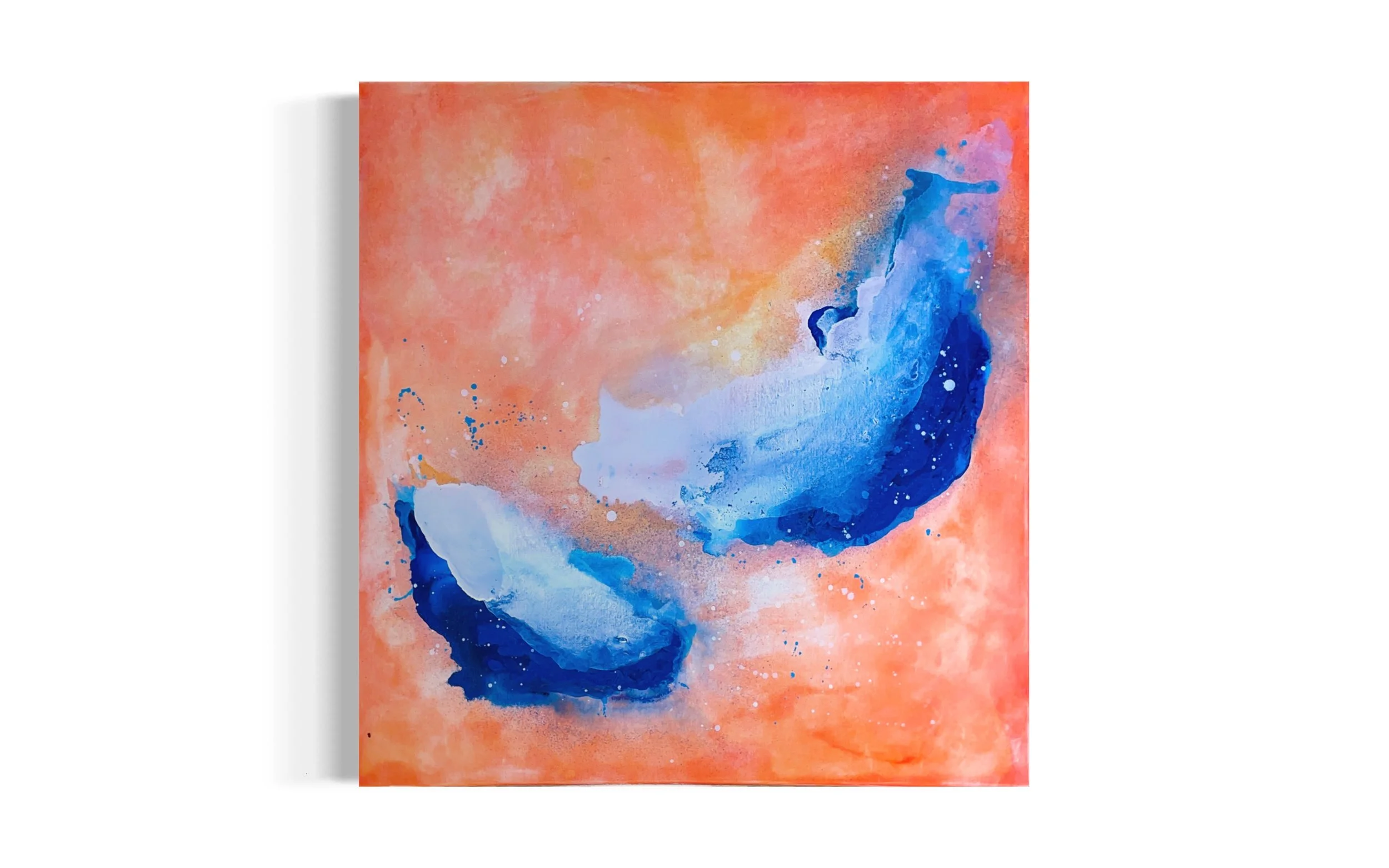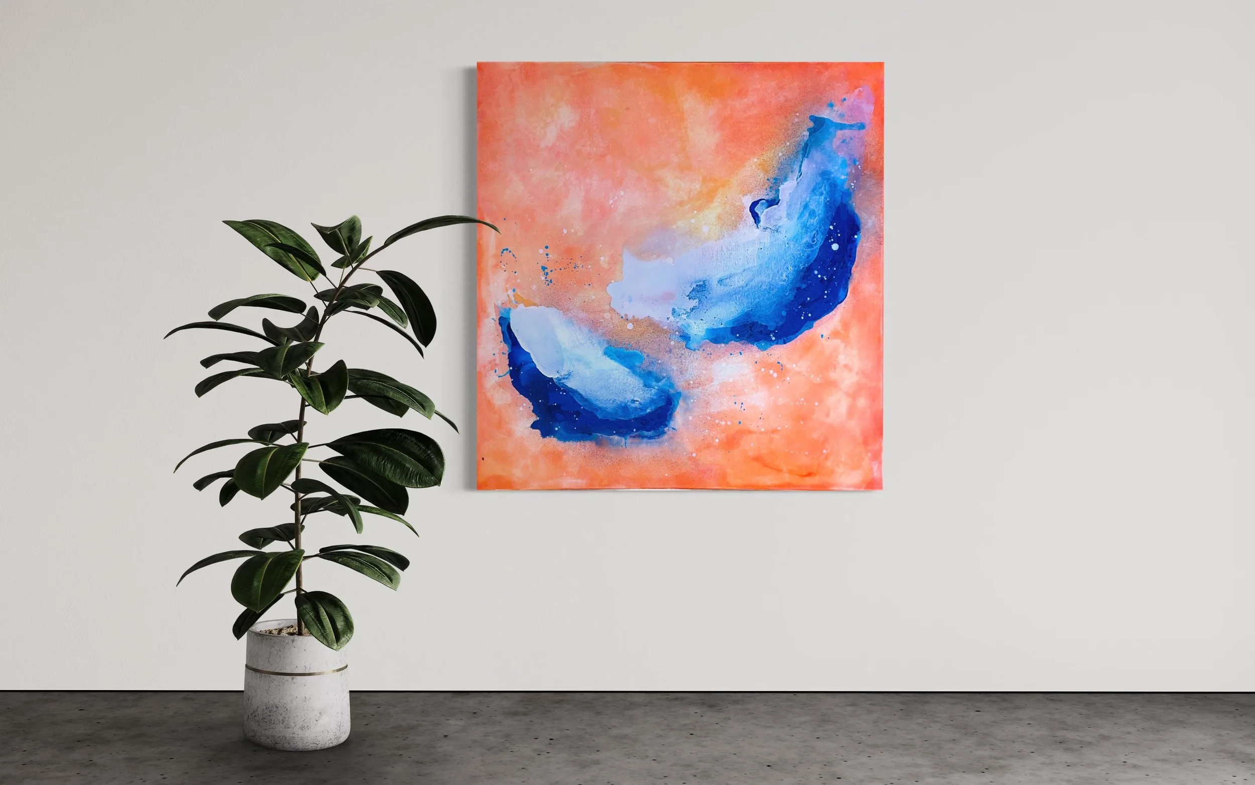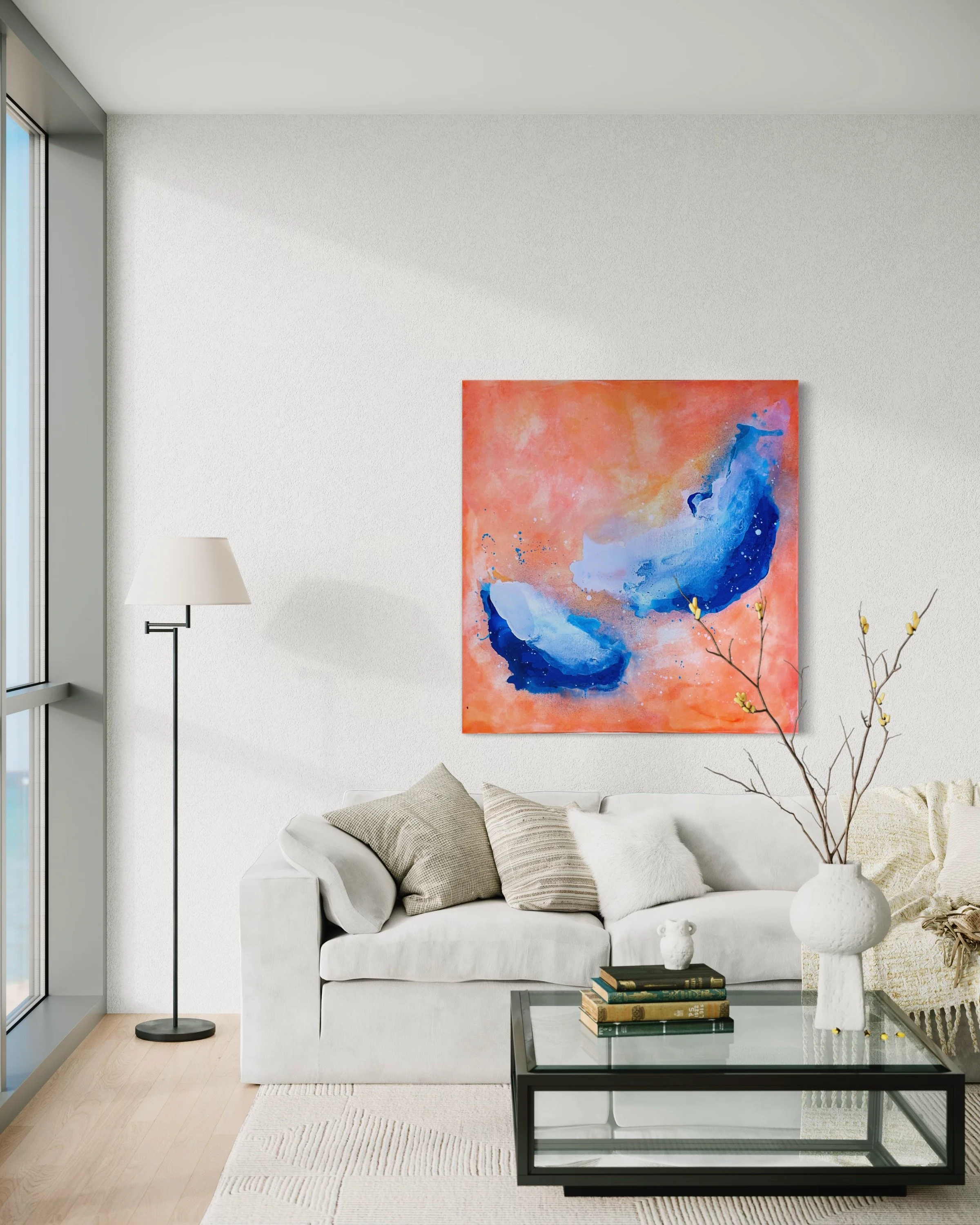 An Original Painting Crafted with Acrylics on Canvas. This artwork measures 89 x 89 cm and is now available for shipping or convenient collection in Bodø. For inquiries, more information and prices, please see the contact information below.